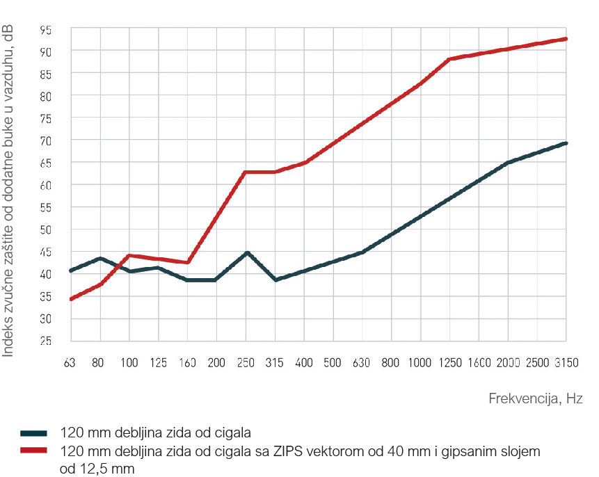 Dodatni indeks izolacije vazdušnog zvuka ZIPS-Vector panel sistema: △Rw = 12 – 14 dB